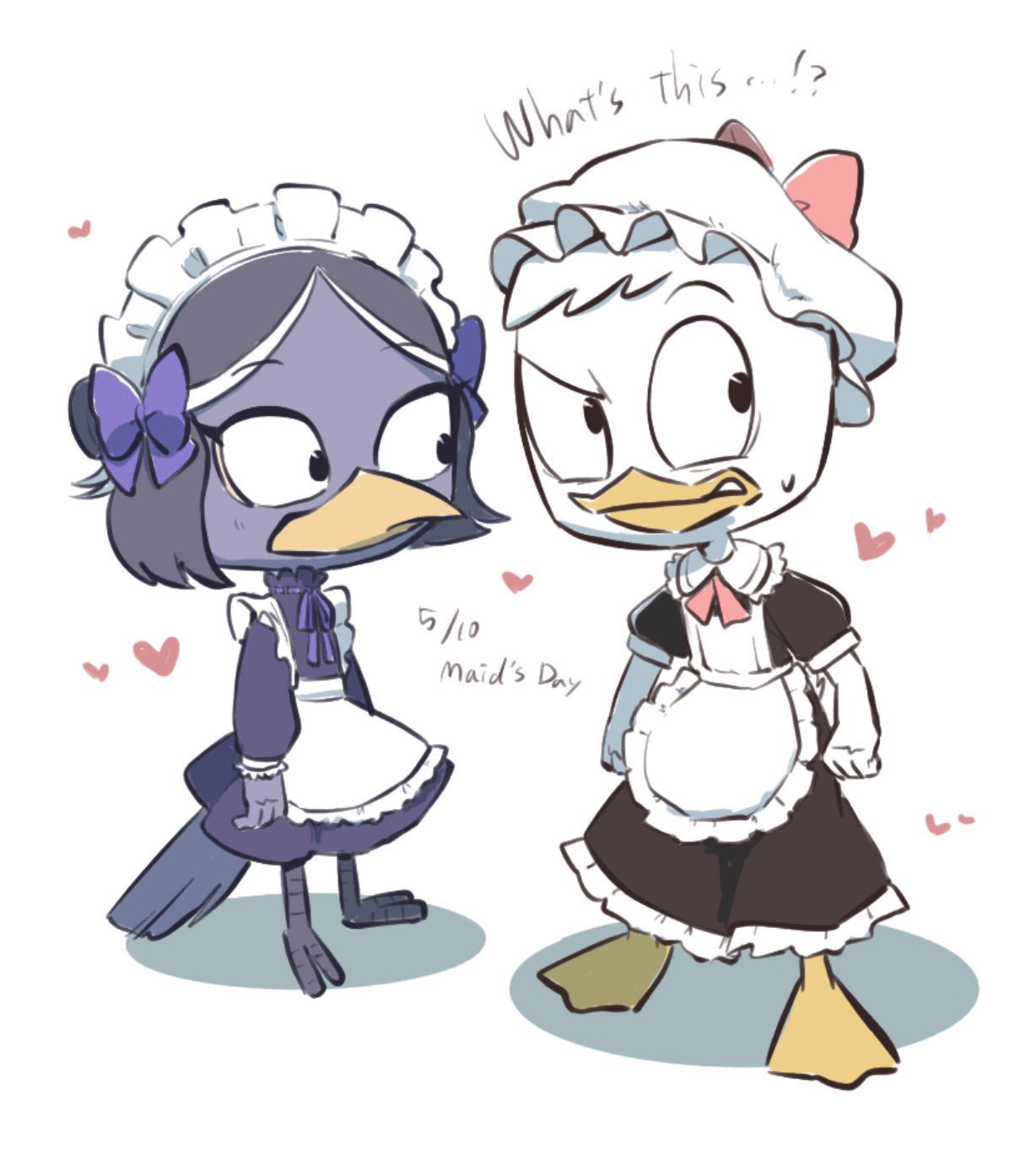 i got this gift art out of nowhere from sakura-san on maid day, 5/10!! it was such a surprise. huey and maggie are so cute in their outfits.