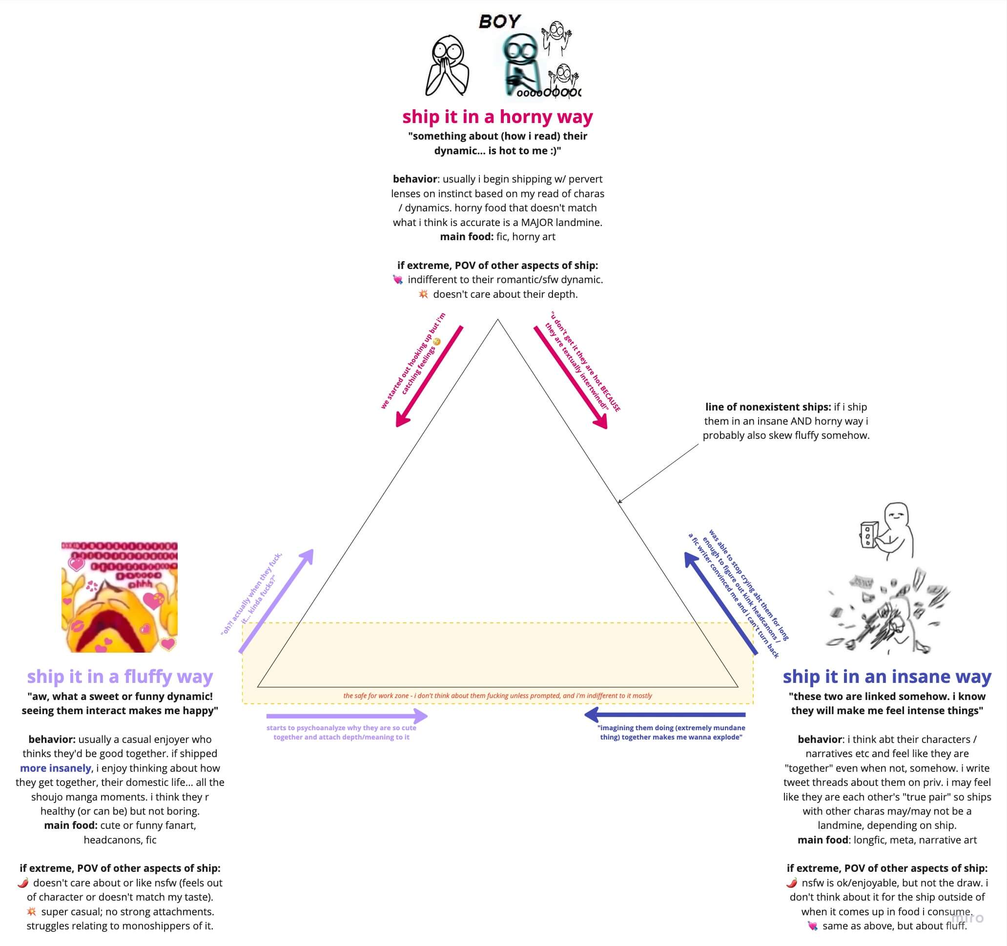 with any given character, i usually have one main ship for them that i prefer far above any other ships i might like for them. (the high maintenance multishipper…) sometimes i will monoship them, so any other ships involving them are a landmine, but i usually get over it as the obsession wanes.